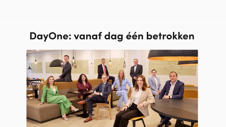 DayOne profileert zich bewust als middelgroot kantoor. “We concurreren niet op naam of omvang, maar op snelheid, betrokkenheid en kwaliteit. Doordat we kleiner zijn, valt het op als iemand er twee dagen niet is. Dat zorgt voor zichtbaarheid, verantwoordelijkheid én betere dienstverlening.”